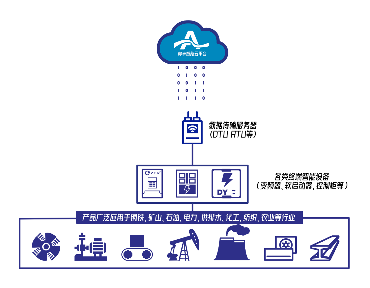 奧卓智能云平臺(tái)通過(guò)對(duì)現(xiàn)有產(chǎn)品進(jìn)行數(shù)據(jù)整合,為客戶提供遠(yuǎn)程維護(hù)、設(shè)備管理、運(yùn)維情況統(tǒng)計(jì)、遠(yuǎn)程智能報(bào)警等一體化服務(wù),為客戶提供基于大數(shù)據(jù)的工業(yè)自動(dòng)化運(yùn)維模式,整合已有的業(yè)務(wù)流程,建立穩(wěn)定開放的應(yīng)用生態(tài)系統(tǒng),利用“大數(shù)據(jù)+智能終端+互聯(lián)網(wǎng)”為客戶解決難點(diǎn)、痛點(diǎn)。 奧卓科技全線產(chǎn)品現(xiàn)都可以作為“智能終端”使用,進(jìn)行數(shù)據(jù)采集、轉(zhuǎn)換和基于云的應(yīng)用程序通信。