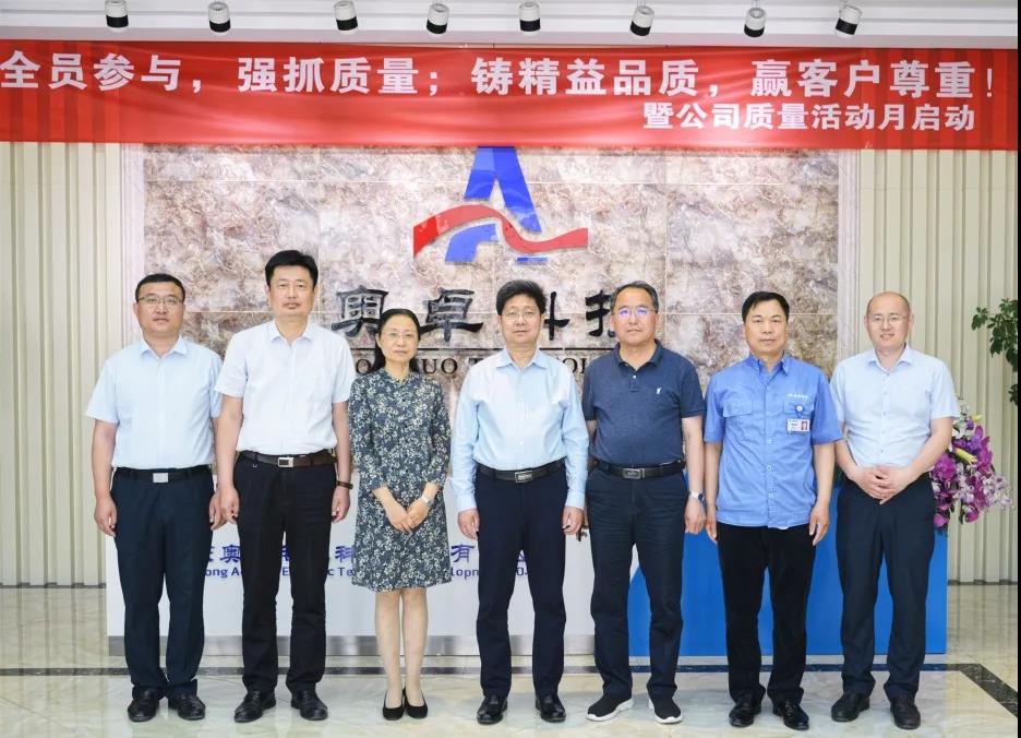 2021年6月4日下午,省人社廳二級(jí)巡視員徐國鈞、省人社廳機(jī)關(guān)黨委副書記及機(jī)關(guān)紀(jì)委書記薛令偉、省人社廳執(zhí)法監(jiān)察局三級(jí)主任科員張羽、山東工業(yè)技師學(xué)院黨委書記孫科順、山東工業(yè)技師學(xué)院院長王瑩、山東工業(yè)技師學(xué)院辦公室主任仵強(qiáng)蒞臨山東奧卓電氣科技發(fā)展有限公司就產(chǎn)教融合相關(guān)事宜開展指導(dǎo)工作。