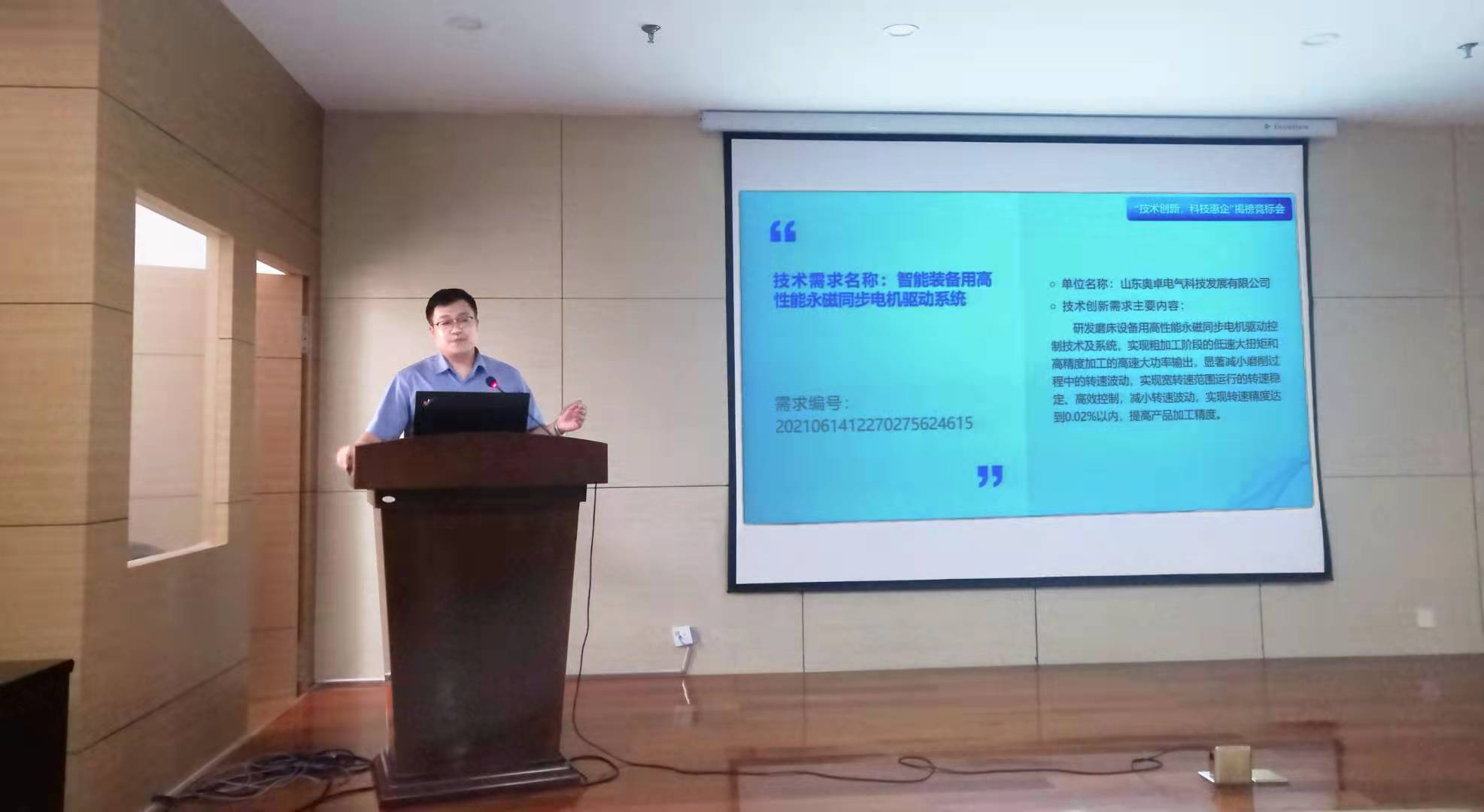 為助力企業(yè)發(fā)展,加快企業(yè)創(chuàng)新,實現(xiàn)地區(qū)經(jīng)濟高質(zhì)量發(fā)展,2021年6月29日,以“技術(shù)創(chuàng)新、科技惠企”為主題的現(xiàn)場揭榜競標(biāo)會在山東省科學(xué)院舉行。濰坊市工信局服務(wù)與創(chuàng)新創(chuàng)業(yè)指導(dǎo)科一級主任科員(負(fù)責(zé)人)付金路帶領(lǐng)山東奧卓電氣科技發(fā)展有限公司參加了本次現(xiàn)場揭榜競標(biāo)會,山東省工信廳創(chuàng)新創(chuàng)業(yè)指導(dǎo)處副處長張旸出席會議并致辭。