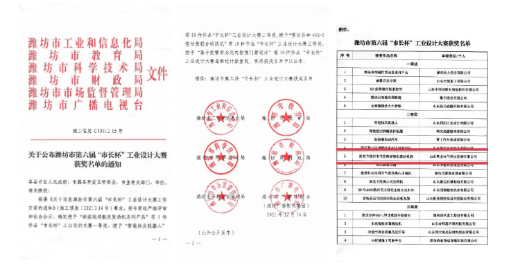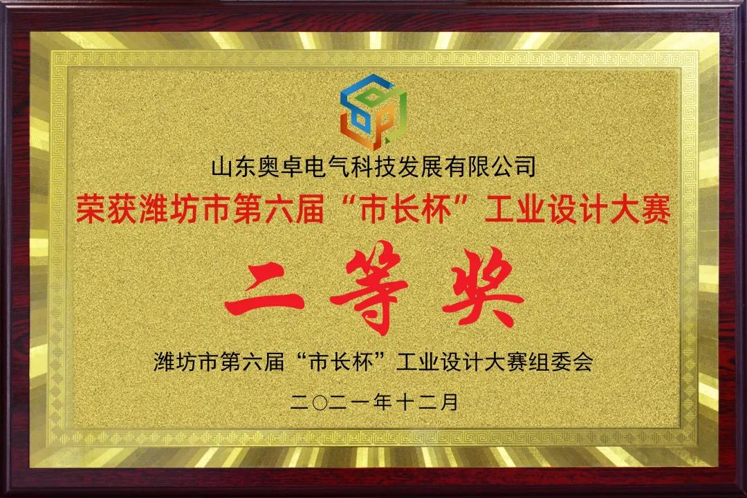 2021年12月28日,濰坊市第六屆“市長(zhǎng)杯”工業(yè)設(shè)計(jì)大賽頒獎(jiǎng)典禮在富華國(guó)際會(huì)議中心隆重舉行。山東奧卓電氣科技發(fā)展有限公司的參賽作品“高效節(jié)能的電氣控制智能化驅(qū)動(dòng)系統(tǒng)”項(xiàng)目經(jīng)過(guò)參賽作品征集和資格審查、作品評(píng)審及答辯、社會(huì)公示、展示點(diǎn)評(píng)等環(huán)節(jié)的層層篩選,在幾百件作品中脫穎而出,榮獲濰坊市第六屆“市長(zhǎng)杯”工業(yè)設(shè)計(jì)大賽二等獎(jiǎng)。等領(lǐng)導(dǎo)出席頒獎(jiǎng)典禮并為獲獎(jiǎng)單位頒獎(jiǎng)。
