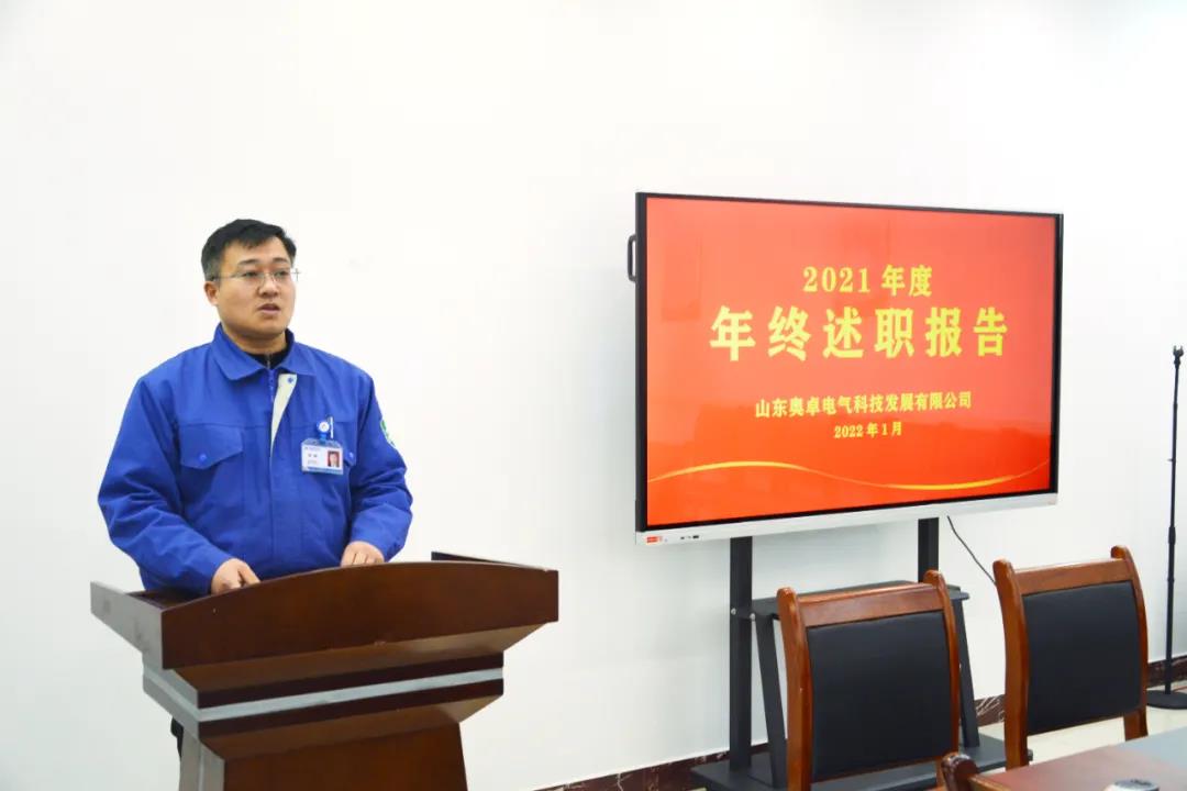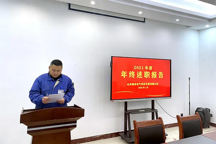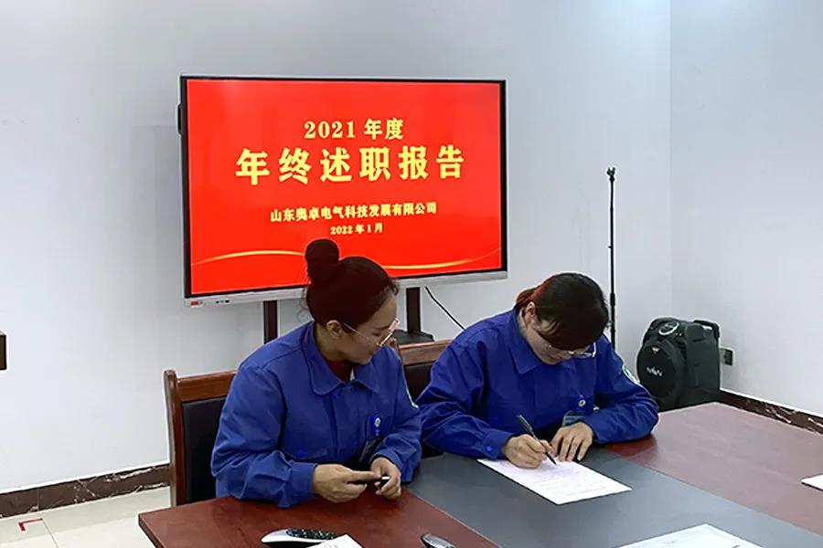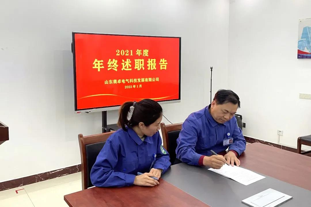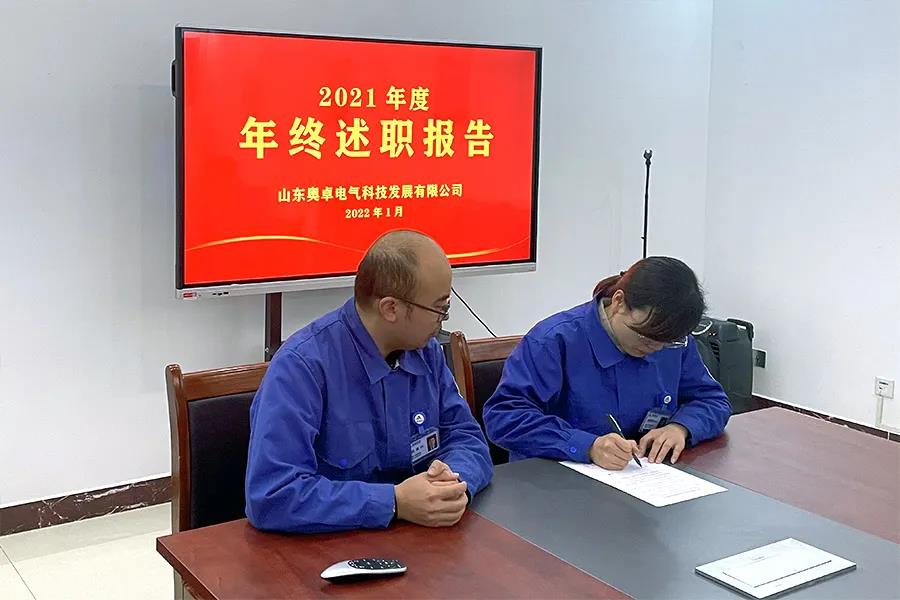 新起點承載新夢想,新希望邁向新征程,2022年1月20日,山東奧卓電氣科技發(fā)展有限公司2021年度管理者年終述職報告會暨2022年度管理者崗位職責(zé)實施責(zé)任書簽訂儀式圓滿結(jié)束。奧卓科技董事長張慶平、常務(wù)副總張曉、副總經(jīng)理婁增磊、總經(jīng)理助理竇金姿出席會議,公司各部門管理人員參加會議并作述職報告。