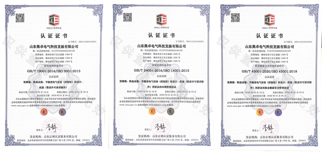 2022年2月10日,三體系認(rèn)證審核組蒞臨山東奧卓電氣科技發(fā)展有限公司,對公司質(zhì)量管理體系、環(huán)境管理體系、職業(yè)健康安全管理體系(以下簡稱“三體系”),開展了復(fù)查復(fù)審認(rèn)證工作。