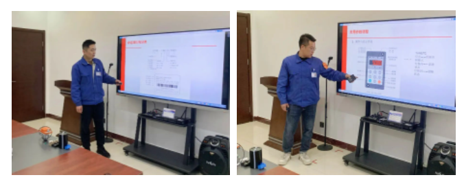 在培訓(xùn)過程中,培訓(xùn)講師針對變頻器的工作原理和元器件功能、常用參數(shù)調(diào)整、常見故障定義和日常保養(yǎng)等多個方面,為員工進(jìn)行了系統(tǒng)的理論講解。同時,按照公司“要帶著問題、帶著思考參加培訓(xùn)”的有關(guān)要求,參訓(xùn)員工提出了工作過程中存在的疑點、難點問題。培訓(xùn)講師也都一一作出了補(bǔ)充解答,讓員工更加直觀、深刻地學(xué)習(xí)到了一些實用性變頻器知識。